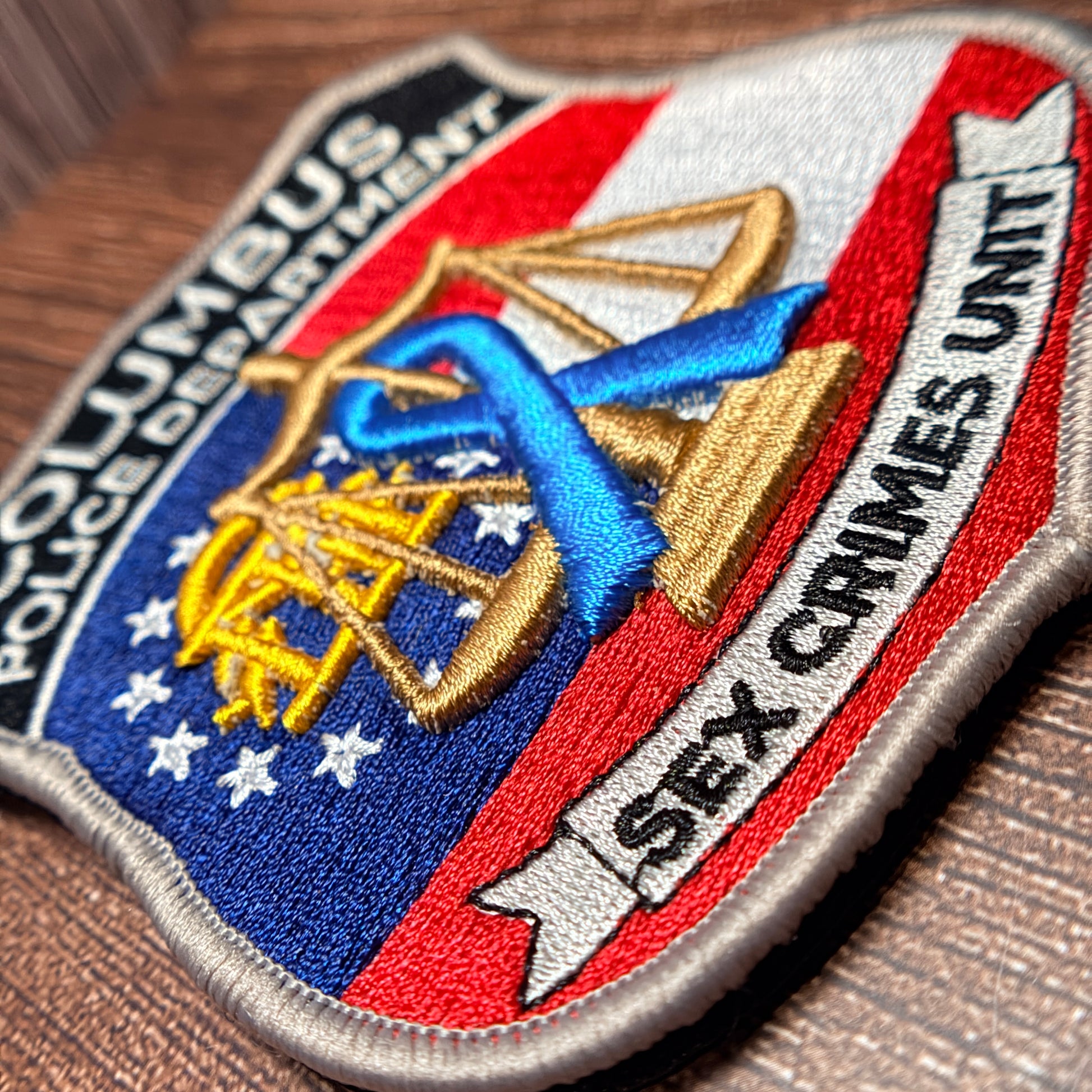 This meticulously crafted embroidered patch represents the Columbus Police Department's Sex Crimes Unit with precision and professionalism. Featuring fine embroidery work that captures intricate design details, the patch includes reliable Velcro backing for secure attachment to uniforms and tactical gear. An authentic insignia for specialized investigative personnel.