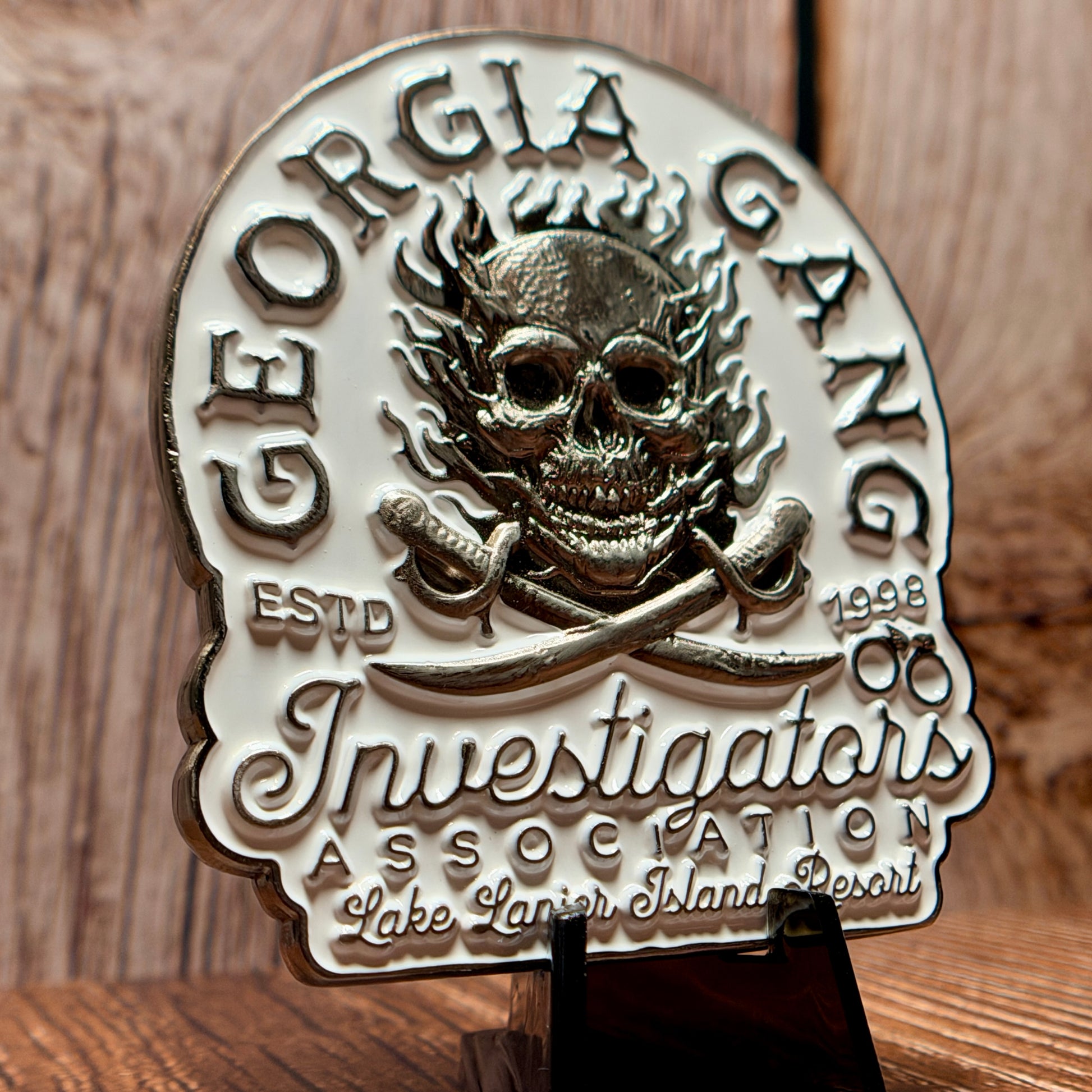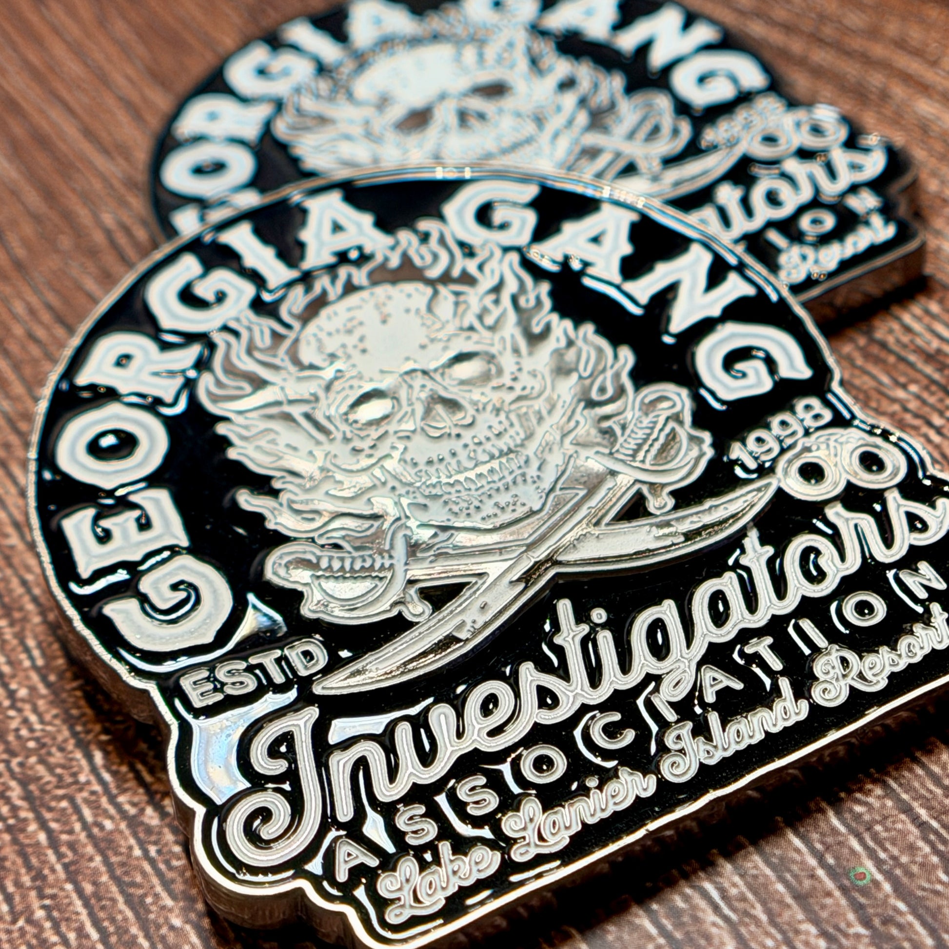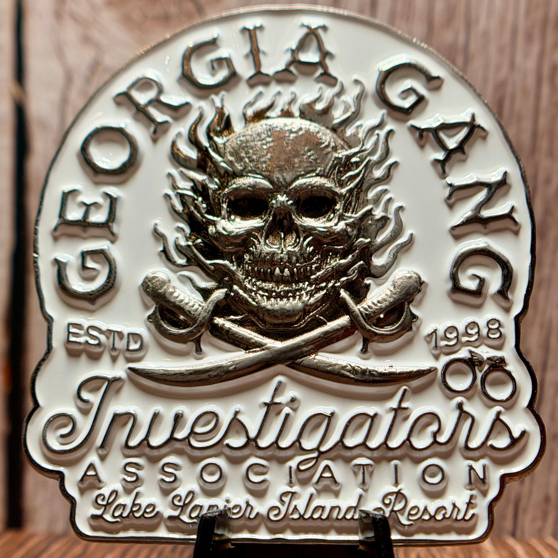 Official challenge coin of the 2025 Georgia Gang Investigator's Association (GGIA) Summer Conference at Lake Lanier Island Resort! This 2.5" coin is finished in antique silver and features a glow in the dark element on one side. Pair it with the matching PVC patch to complete your official conference collection!