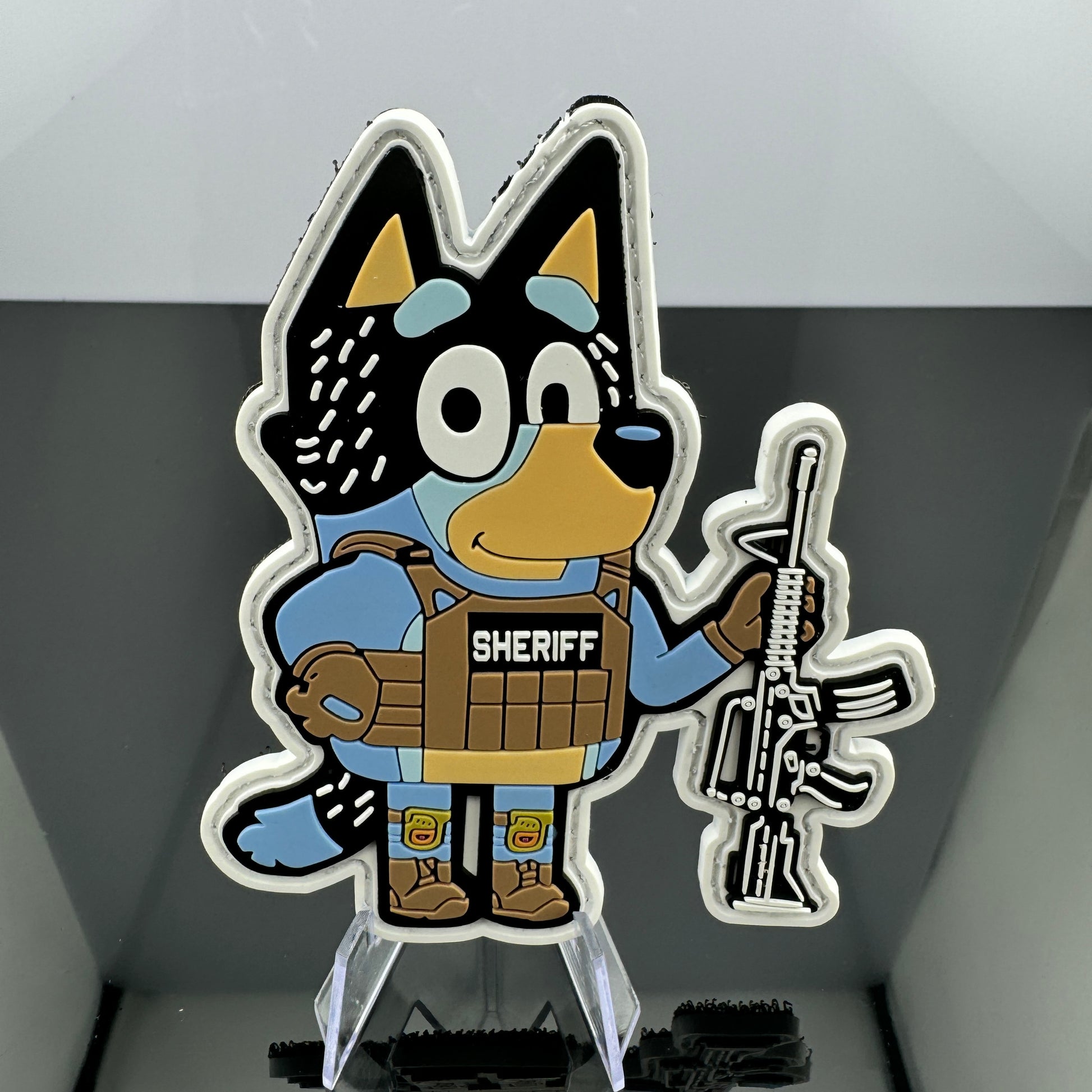 IYKYK - Those with little ones, this one is for you! Tactical version of the world’s most famous cartoon Blue(y) Cattle Dog’s Dad! There are 3 versions of this BANDIT available - POLICE, SHERIFF, and USA 🇺🇸. 4” x 3.5” with Velcro backing!